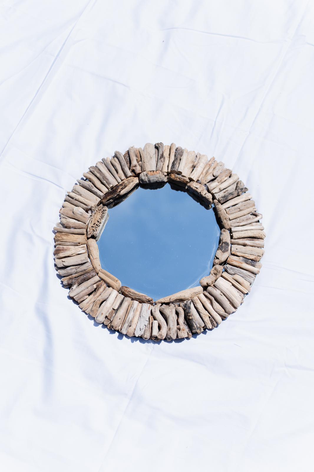 Le miroir rond "KUTA" est fabriqué à partir de bois flotté naturel, soigneusement récolté sur les plages méditerranéennes. Chaque pièce est entièrement faite main dans le respect des techniques artisanales, garantissant une œuvre unique et éco-responsable. Le bois flotté, avec ses couleurs et textures naturelles, apporte un caractère chaleureux et authentique, parfait pour créer une atmosphère accueillante et relaxante chez vous.